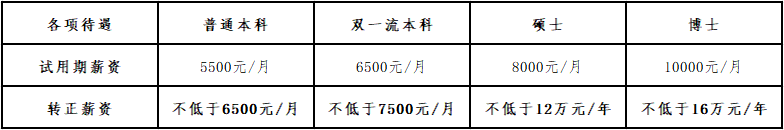 (2)激励费(安家费):签订劳动合同后根据学历层次一次性给予15000元-30000元激励费(安家费),约定服务年限5年。