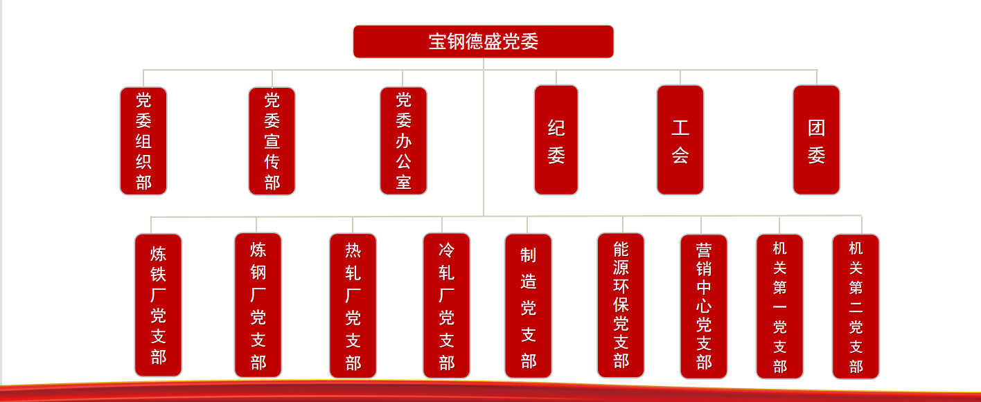 中共宝钢德盛不锈钢有限公司委员会成立于2011年3月4日,隶属于中共太原钢铁(集团)有限公司委员会和中共福州市人民政府国有资产监督管理委员会双重管理。2021年11月换届选举产生新一届党委委员,党委下设9个党支部。